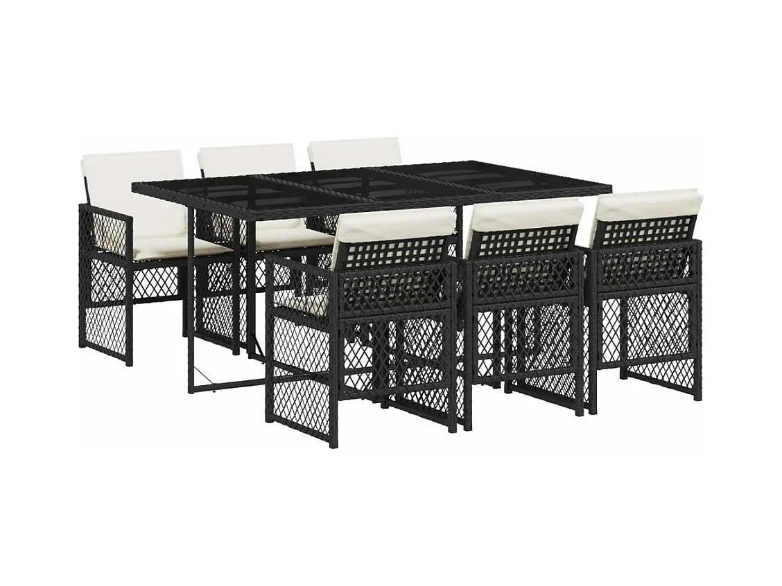 Ensemble à manger de jardin coussins 7 pièces noir résine tressée