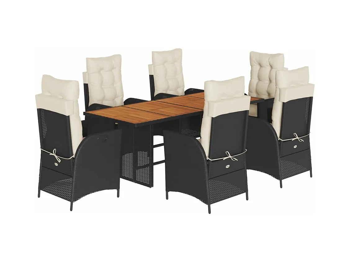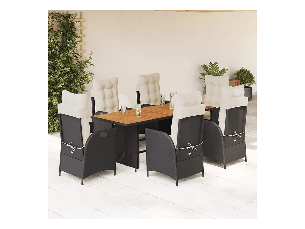Ensemble à manger de jardin et coussins 7 pièces noir rotin acacia
