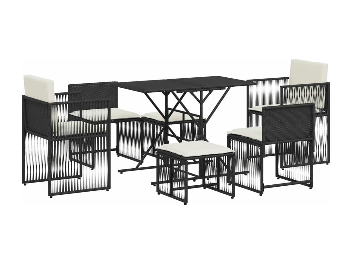 Salle à manger de jardin pliable jardin 7 pcs Acier Résine tressée Noir GFDF45553