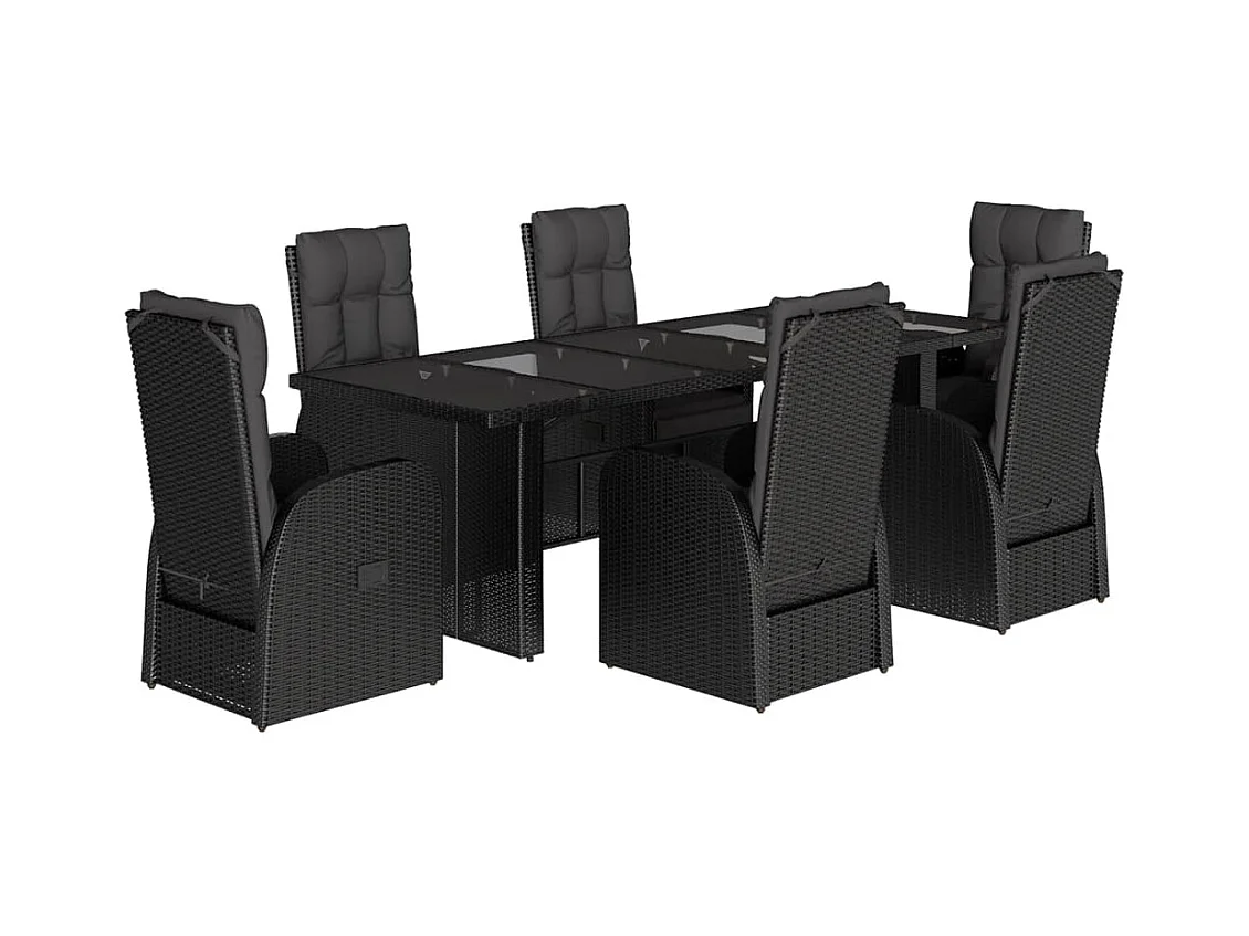 Ensemble à manger de jardin coussins 7 pièces noir résine tressée