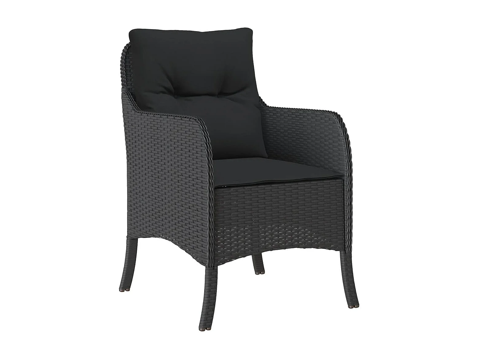 Ensemble à manger de jardin coussins 7 pièces Noir Résine tressée