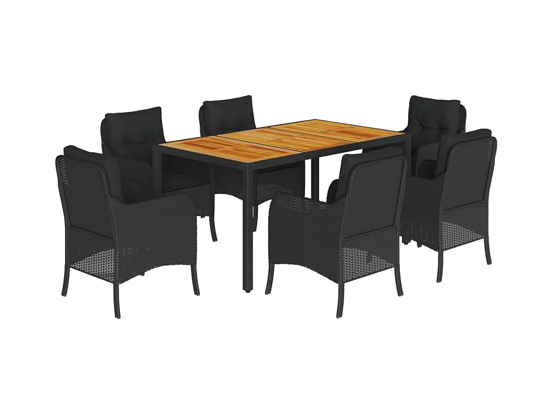 Ensemble à manger de jardin et coussins 7 pièces noir rotin acacia