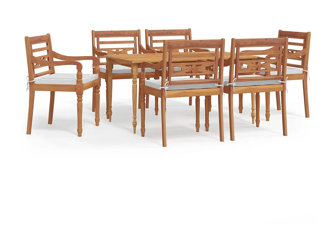 Ensemble à manger de jardin coussins 7pcs Bois de teck solide BE52302