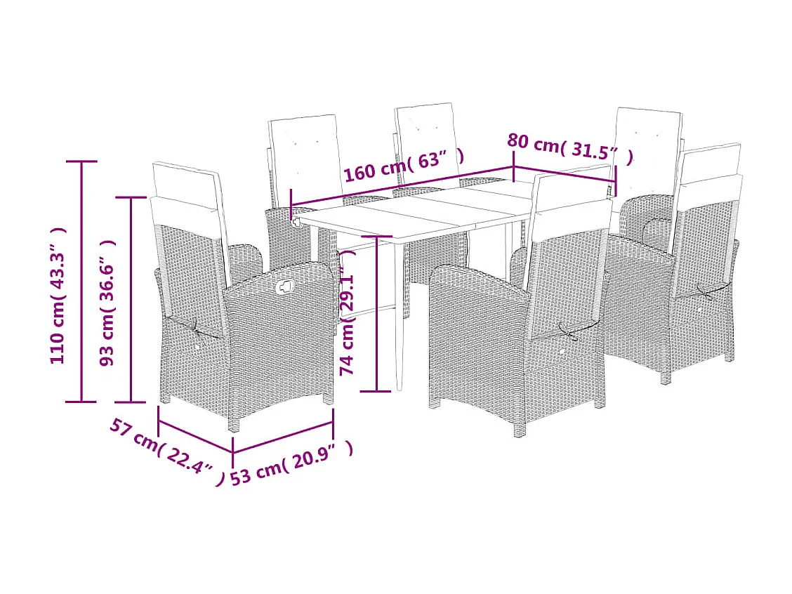 Ensemble à manger de jardin coussins 7pcs Noir Résine tressée