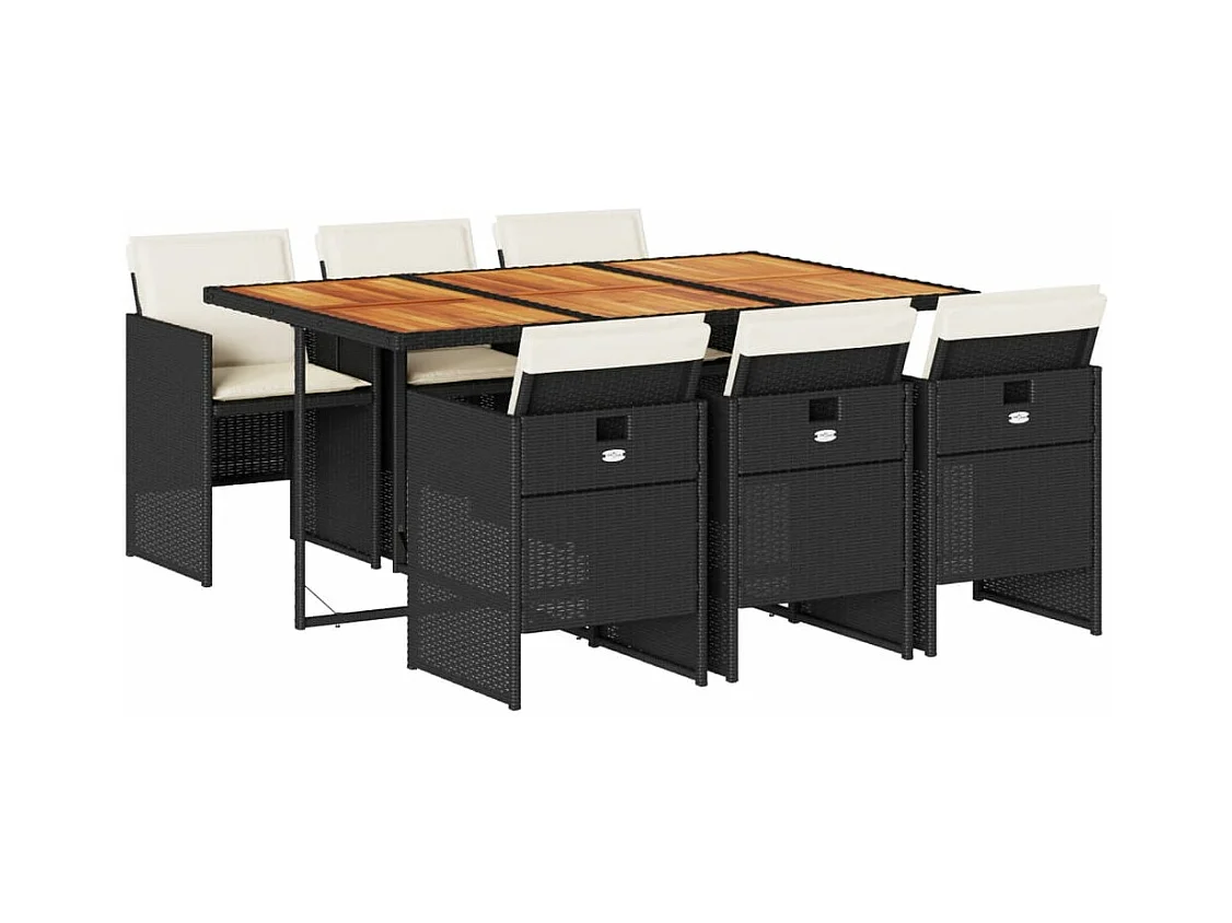Ensemble à manger de jardin coussins 7pcs Noir Résine tressée