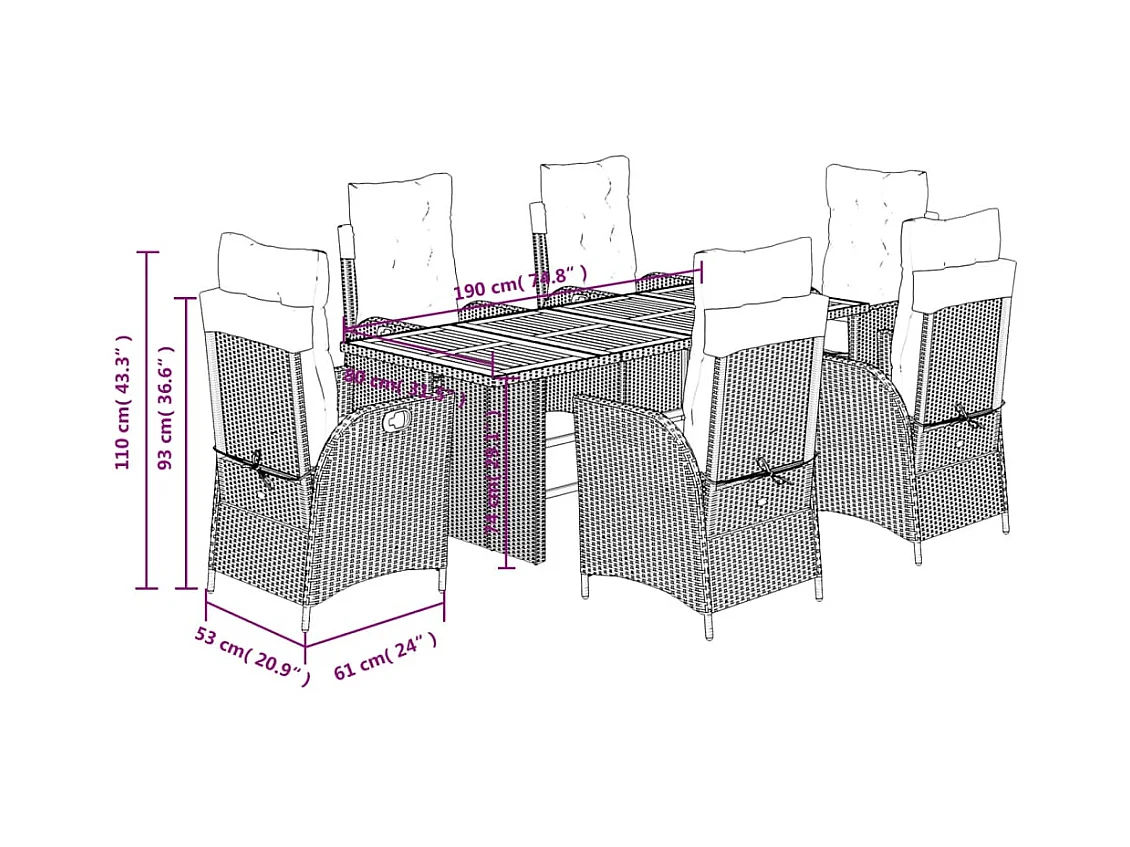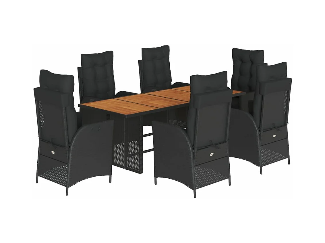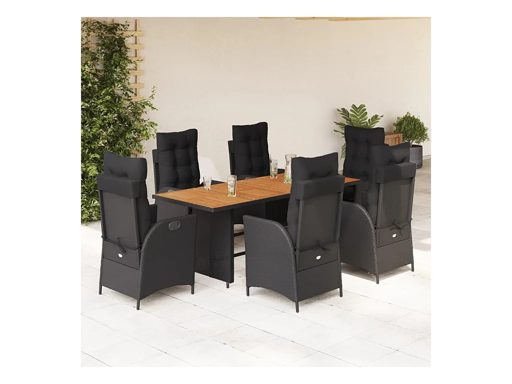 Ensemble à manger de jardin coussins 7pcs Noir Résine tressée