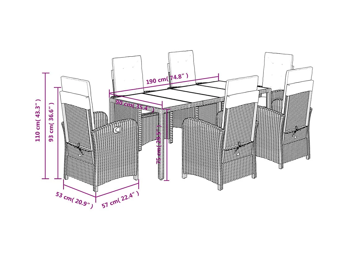 Ensemble à manger de jardin coussins 7pcs Noir Résine tressée