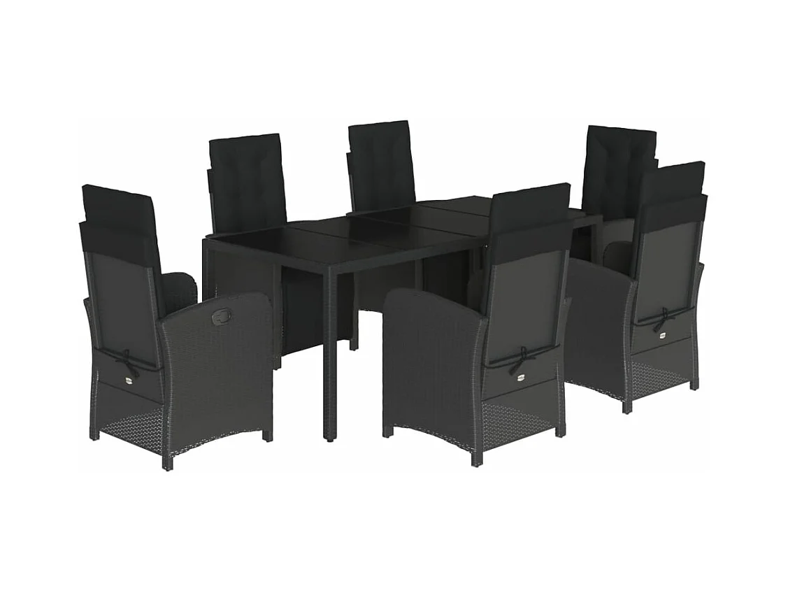 Ensemble à manger de jardin coussins 7pcs Noir Résine tressée