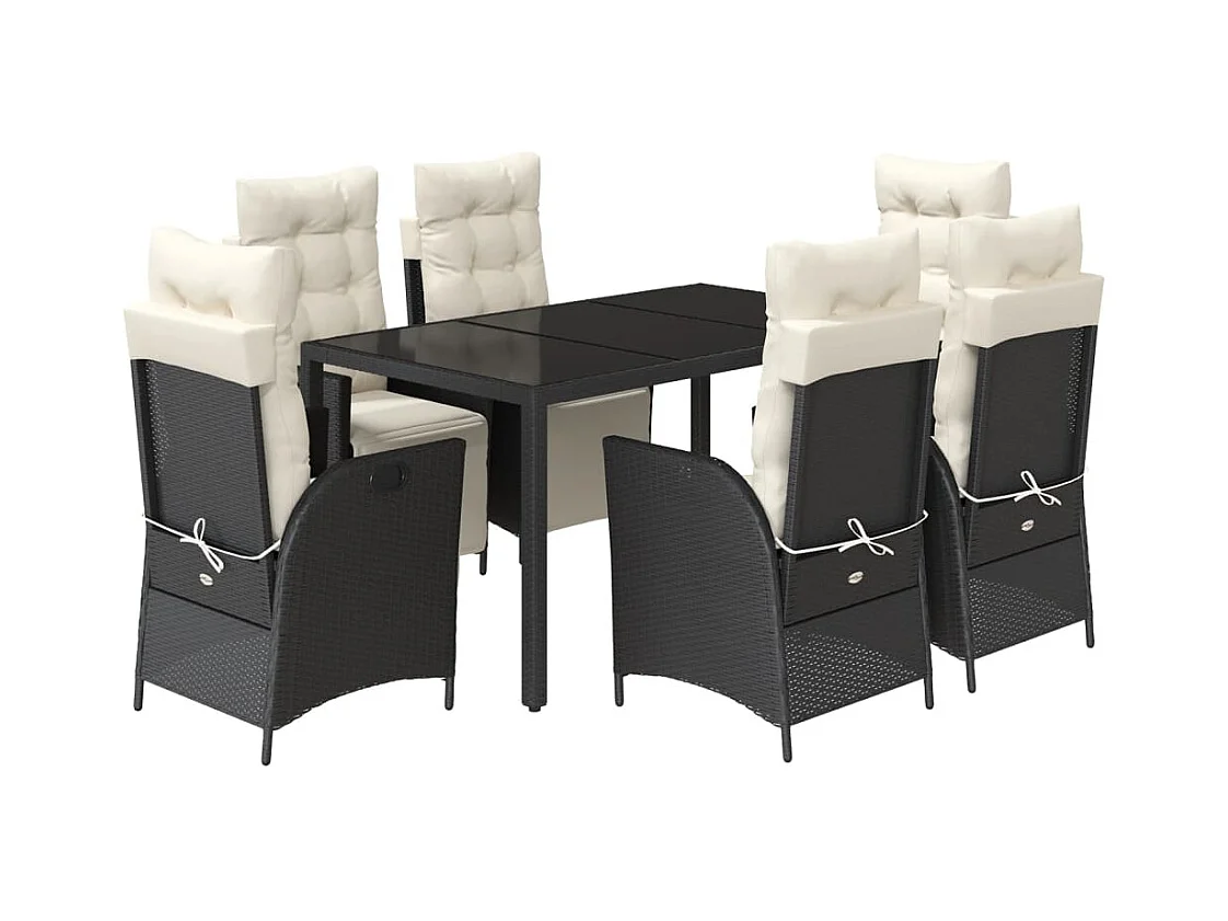 Ensemble à manger de jardin coussins 7pcs Noir Résine tressée