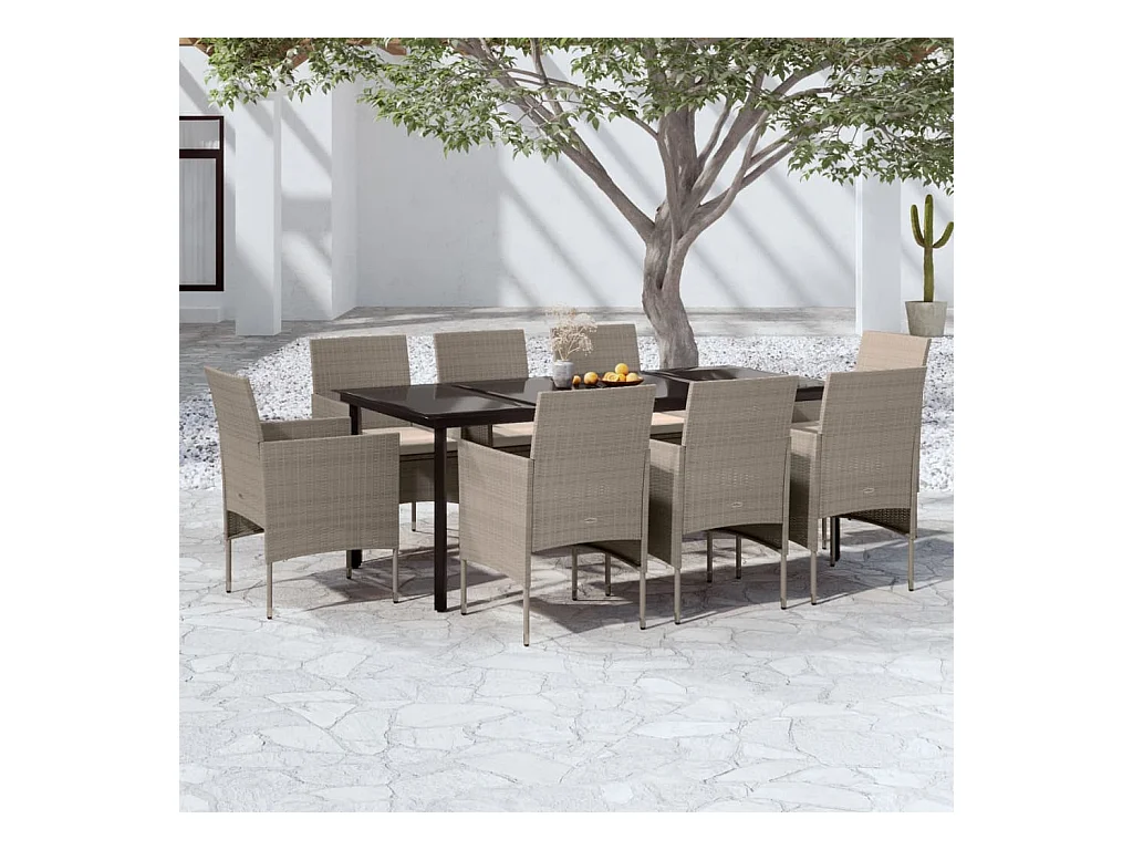 Ensemble à manger de jardin et coussins 9 pcs Poly rotin Beige