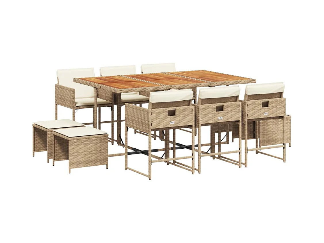 Ensemble à manger de jardin et coussins 11 pcs beige poly rotin