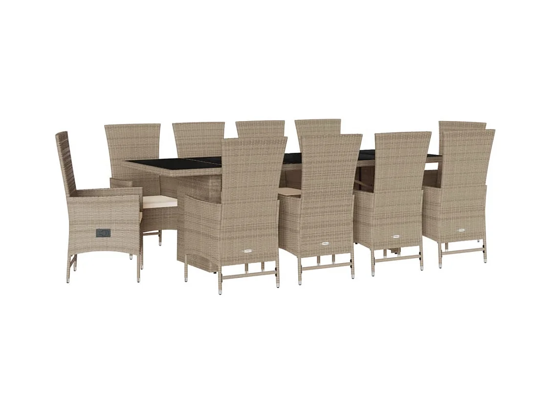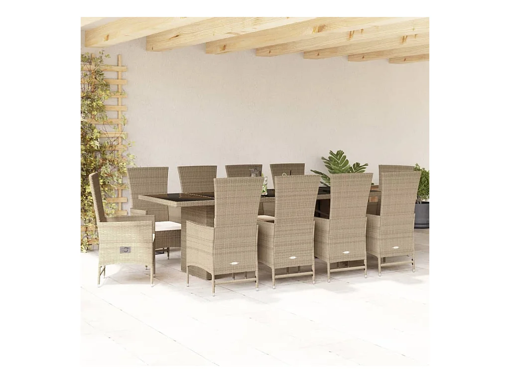 Ensemble à manger de jardin et coussins 11 pcs beige poly rotin