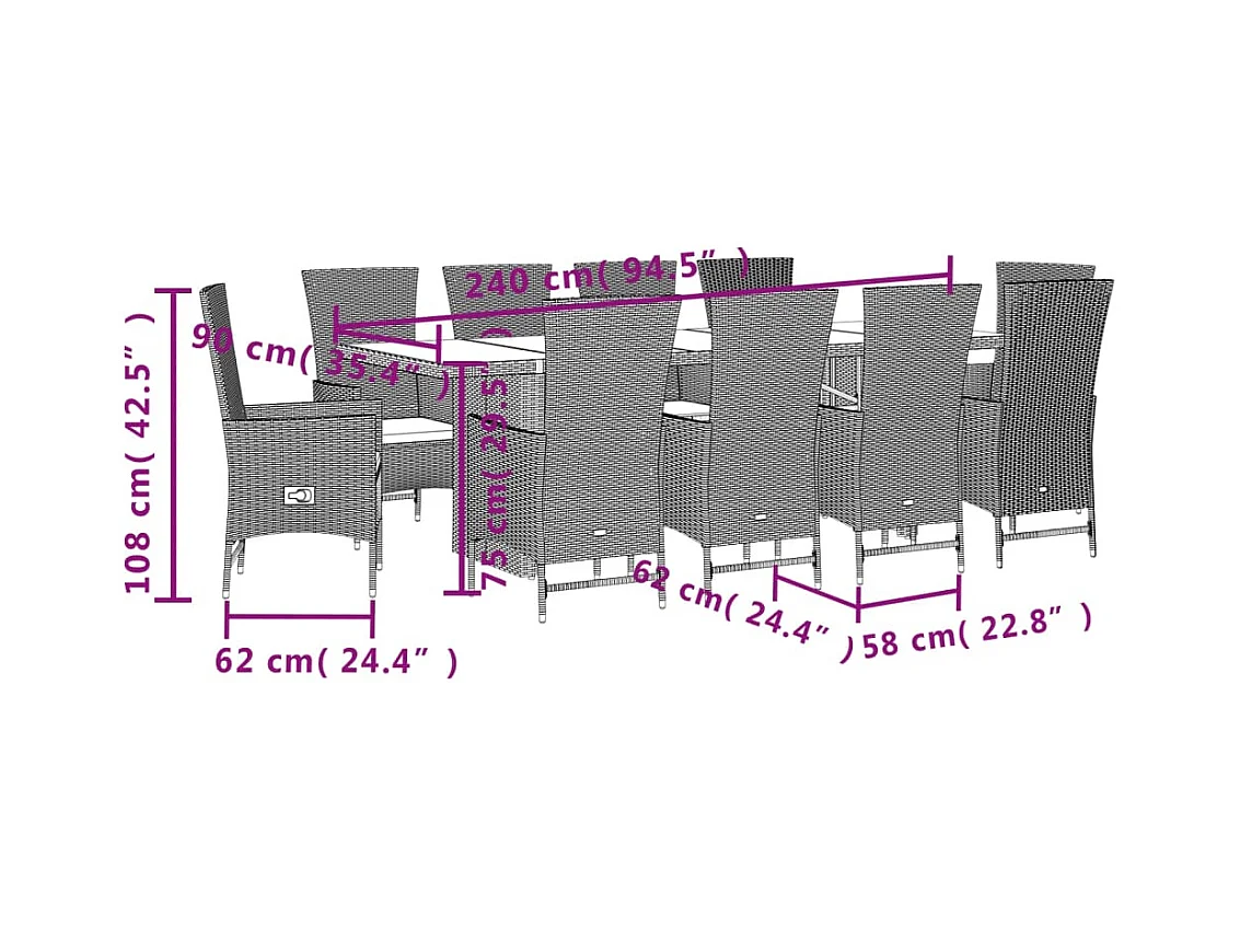 Ensemble à manger de jardin et coussins 9 pcs beige Poly rotin