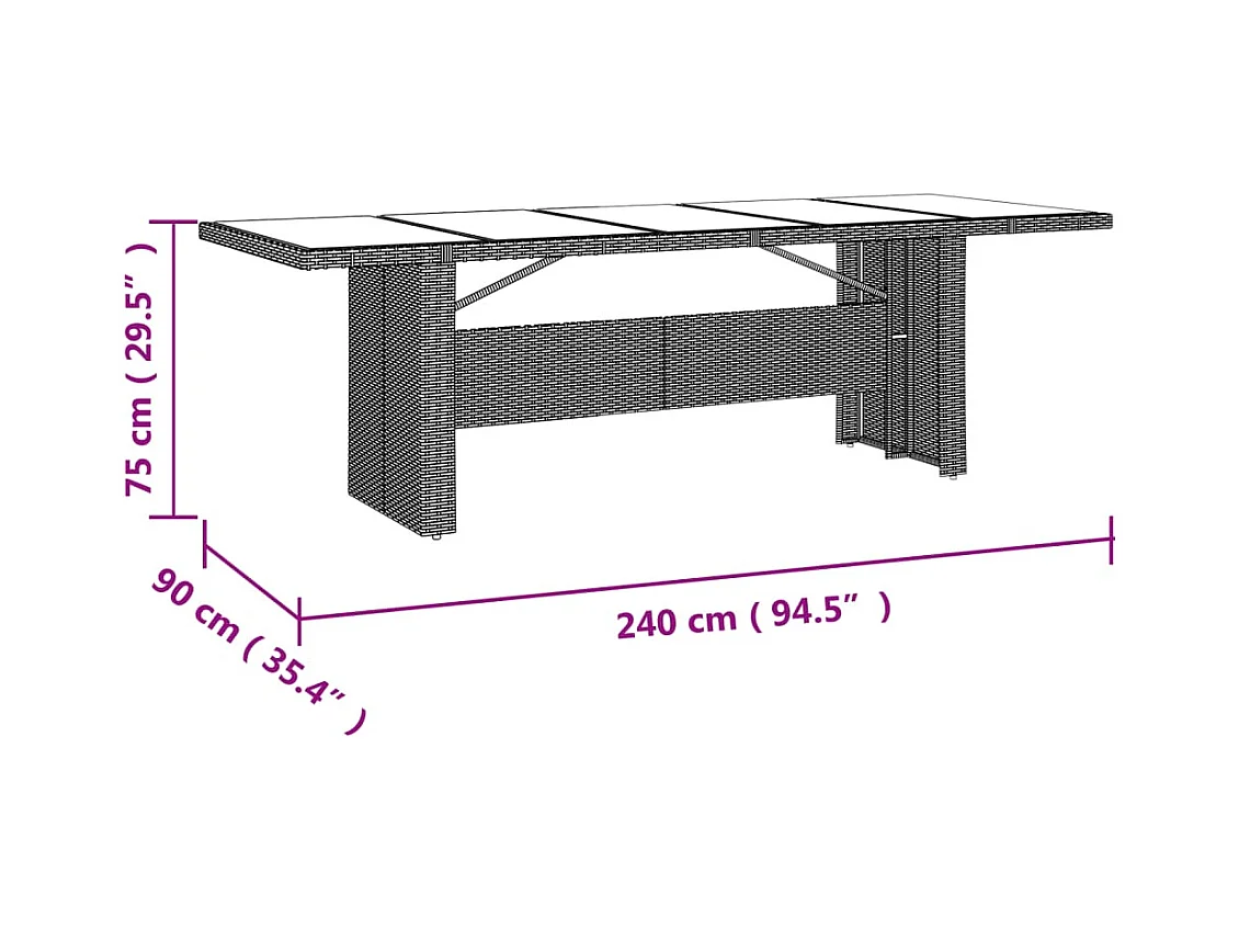 Ensemble à manger de jardin avec coussins 7 pcs rotin et verre