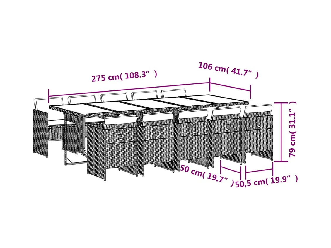 Ensemble à manger de jardin coussins 13 pcs gris résine tressée