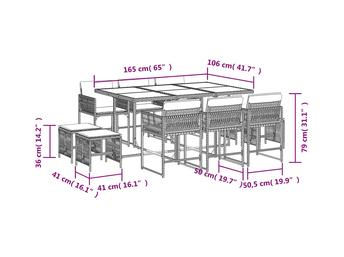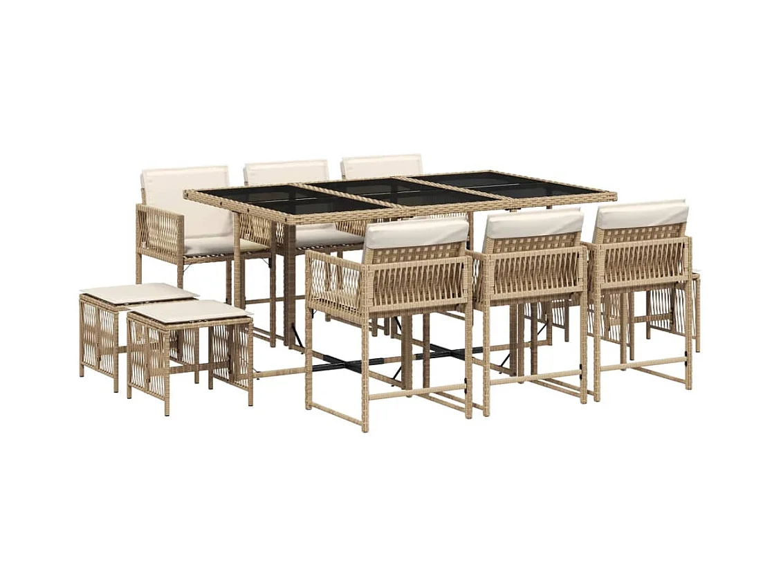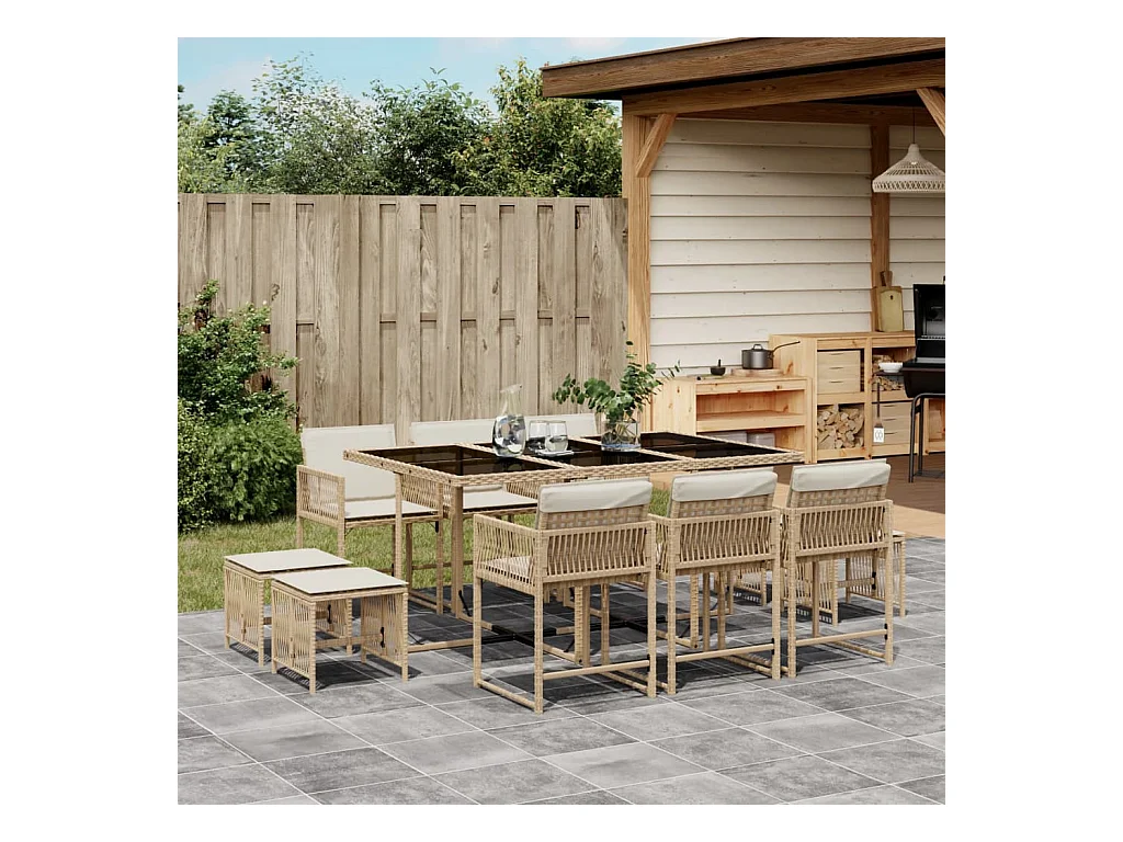 Ensemble à manger de jardin et coussins 11 pièces beige poly rotin