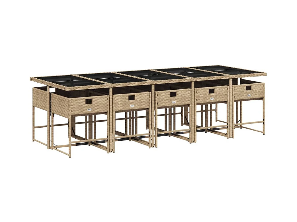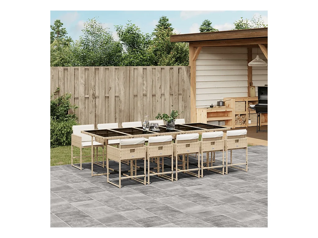 Ensemble à manger de jardin et coussins 11 pièces beige poly rotin