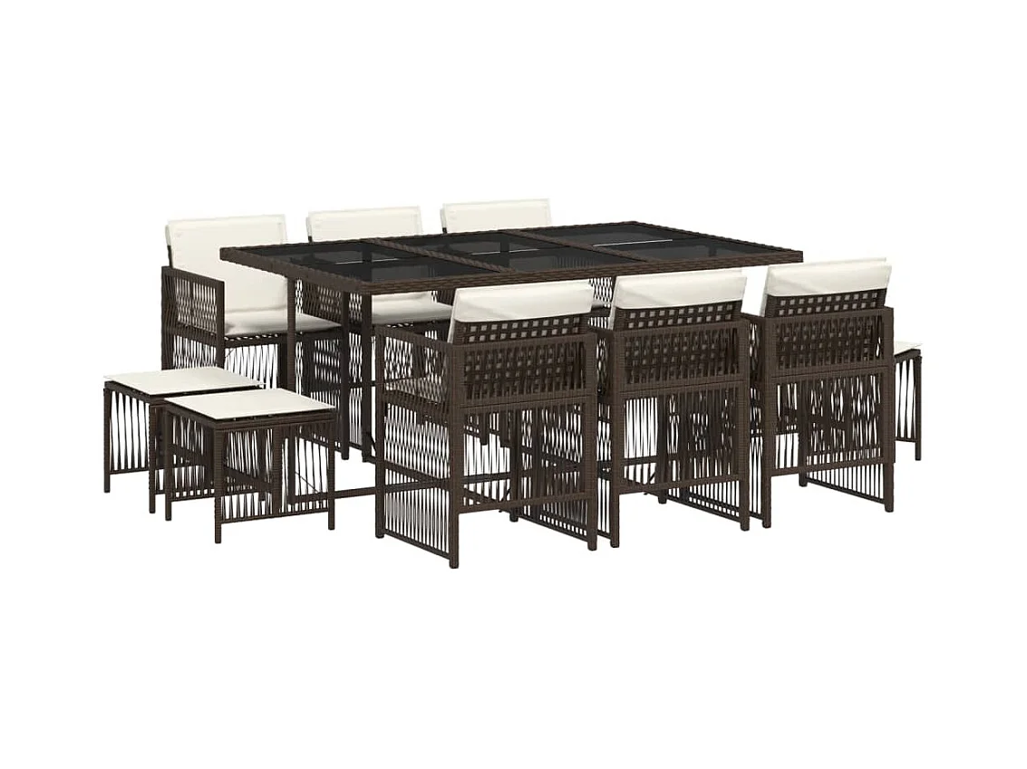 Ensemble à manger de jardin et coussins 11 pièces marron rotin