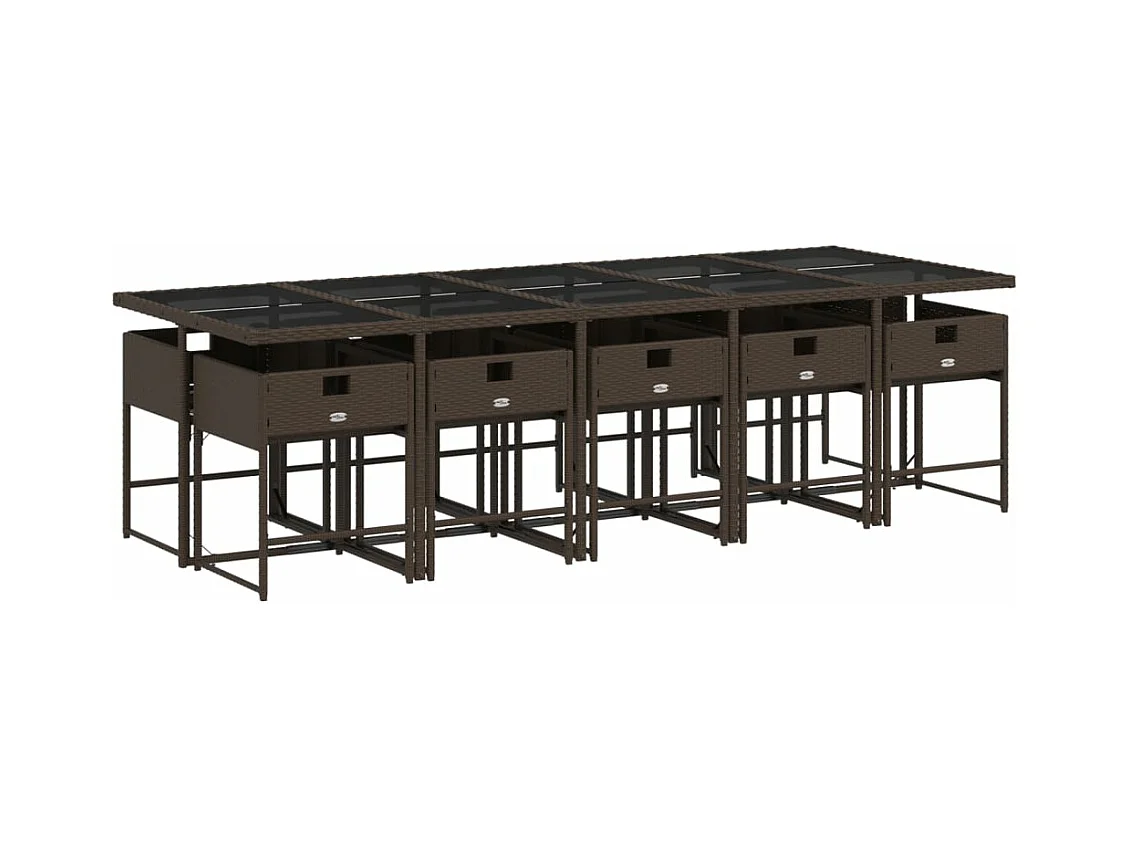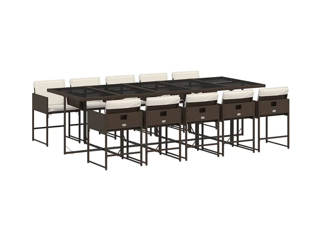 Ensemble à manger de jardin et coussins 11 pièces marron rotin