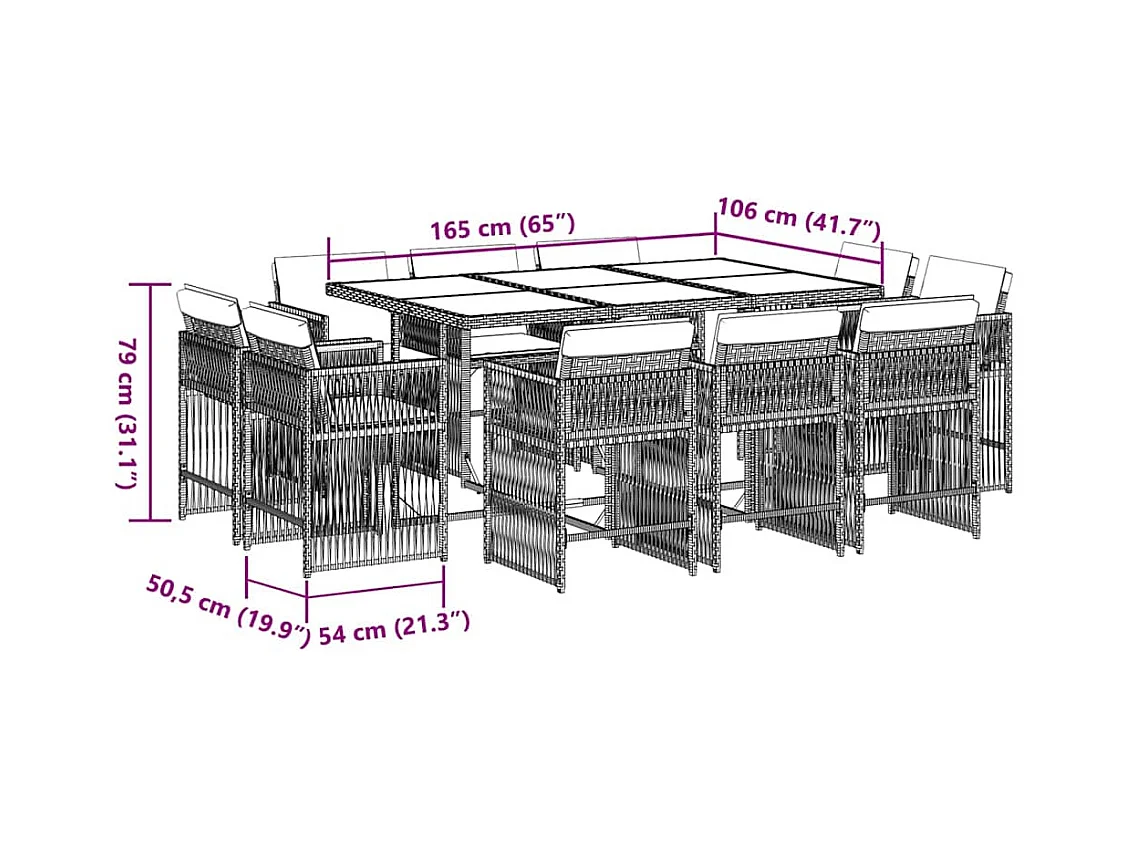 Ensemble à manger de jardin et coussins 11 pièces marron rotin