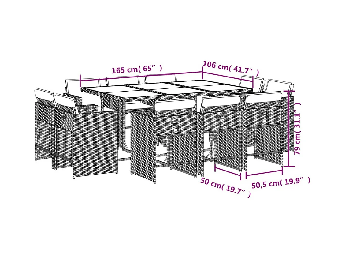 Ensemble à manger de jardin et coussins 11 pièces beige poly rotin