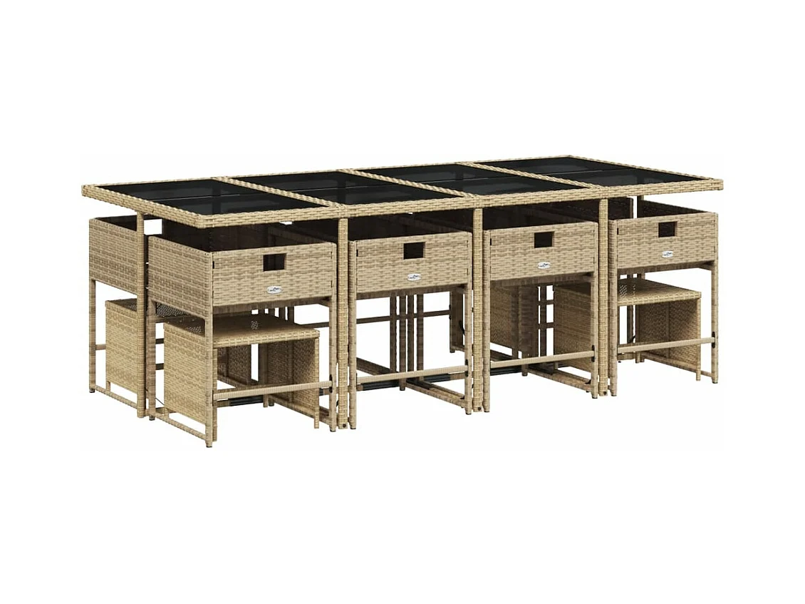 Ensemble à manger de jardin coussins 13 pièces mélange beige rotin
