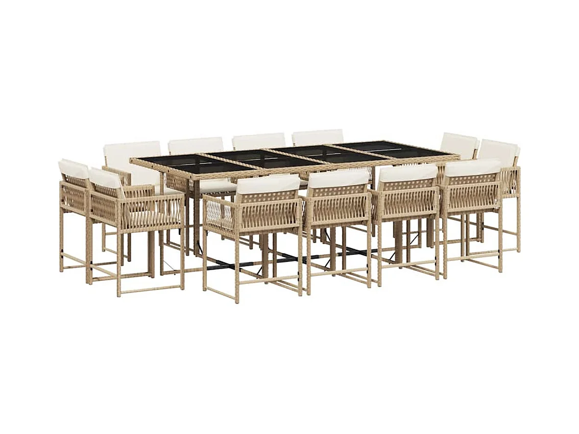 Ensemble à manger de jardin et coussins 13 pièces beige
