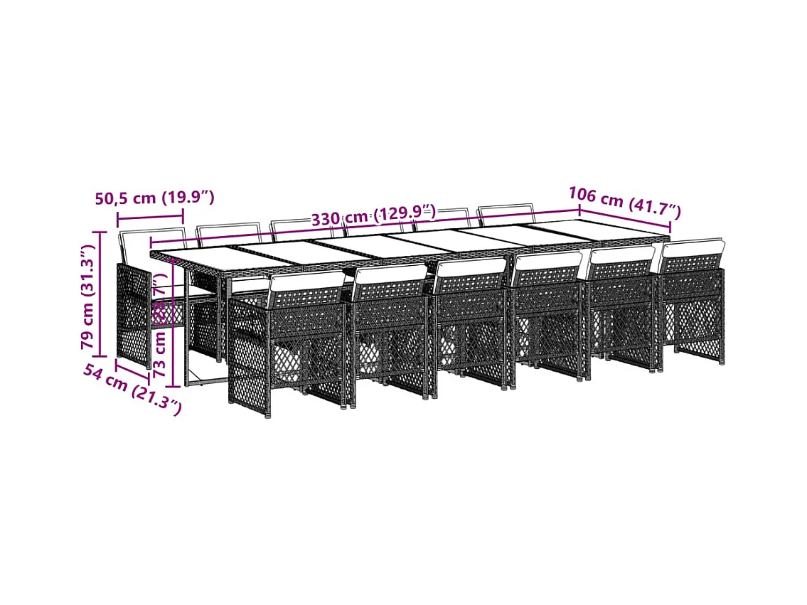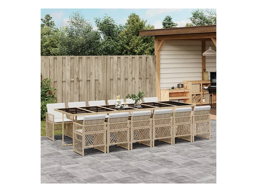 Ensemble à manger de jardin et coussins 13 pièces beige