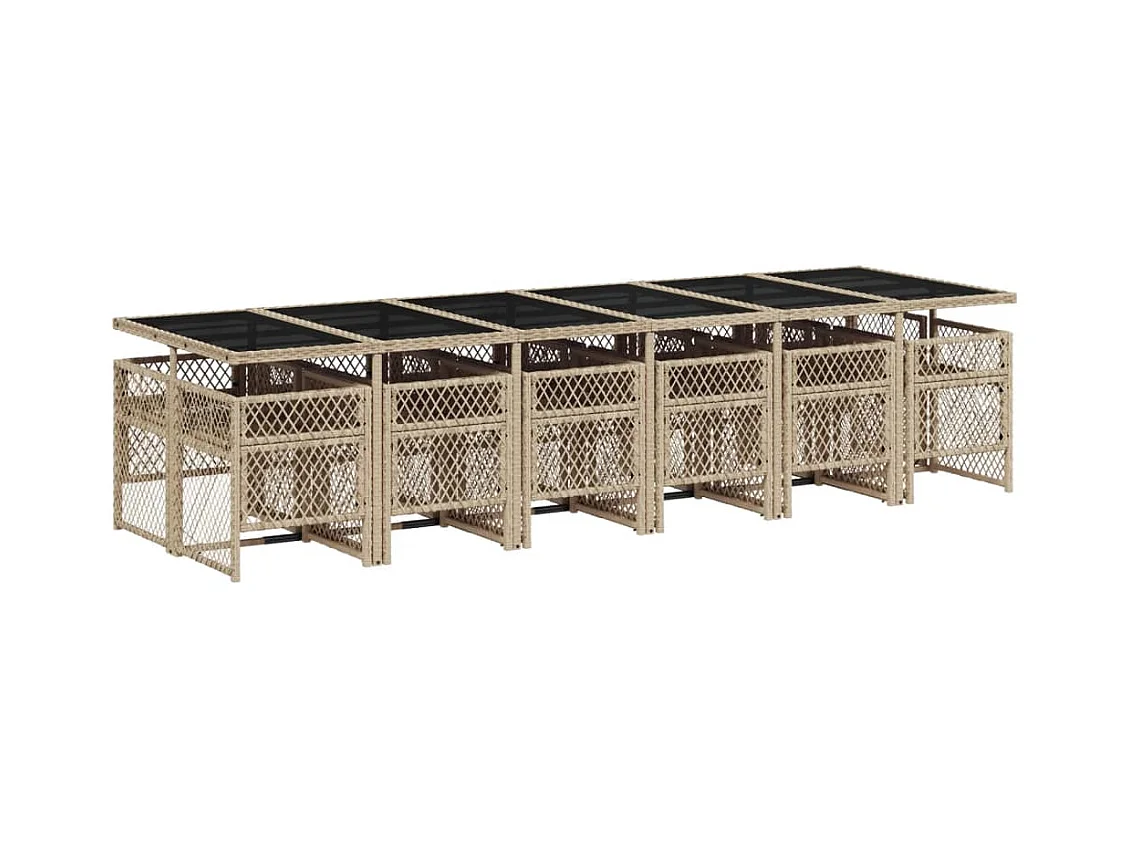 Ensemble à manger de jardin coussins 13 pièces mélange beige rotin