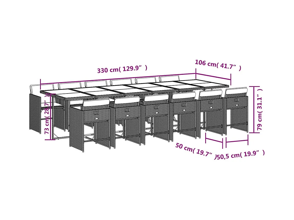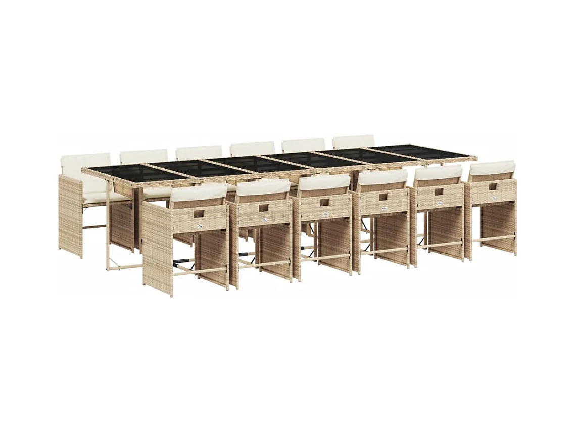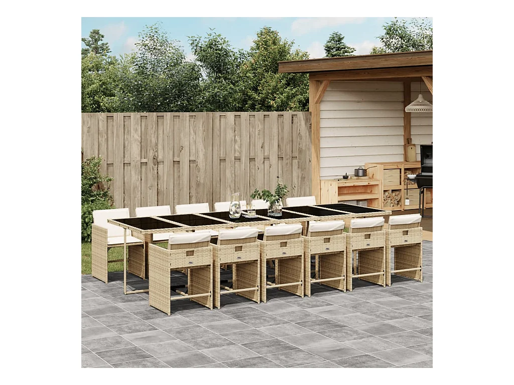 Ensemble à manger de jardin et coussins 13 pièces beige