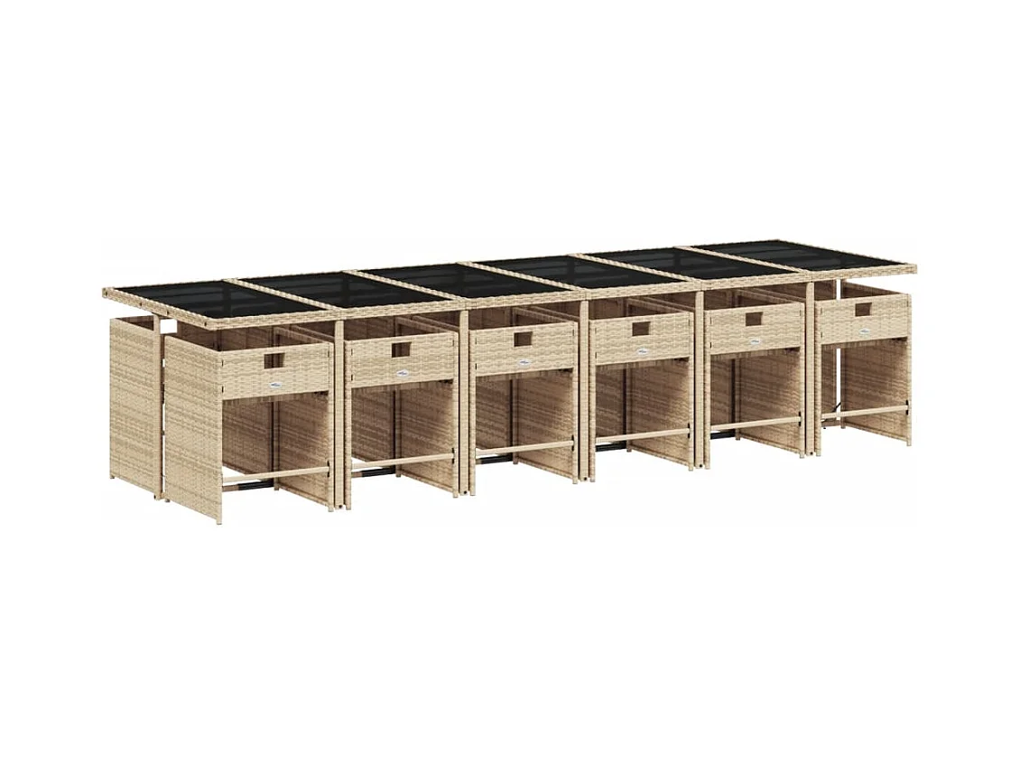 Ensemble à manger de jardin coussins 13 pièces mélange beige rotin