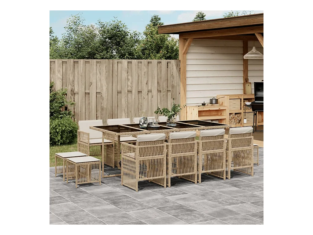 Ensemble à manger de jardin et coussins 13 pièces beige