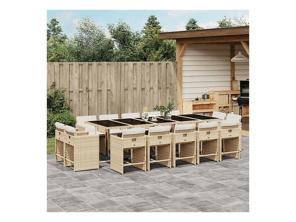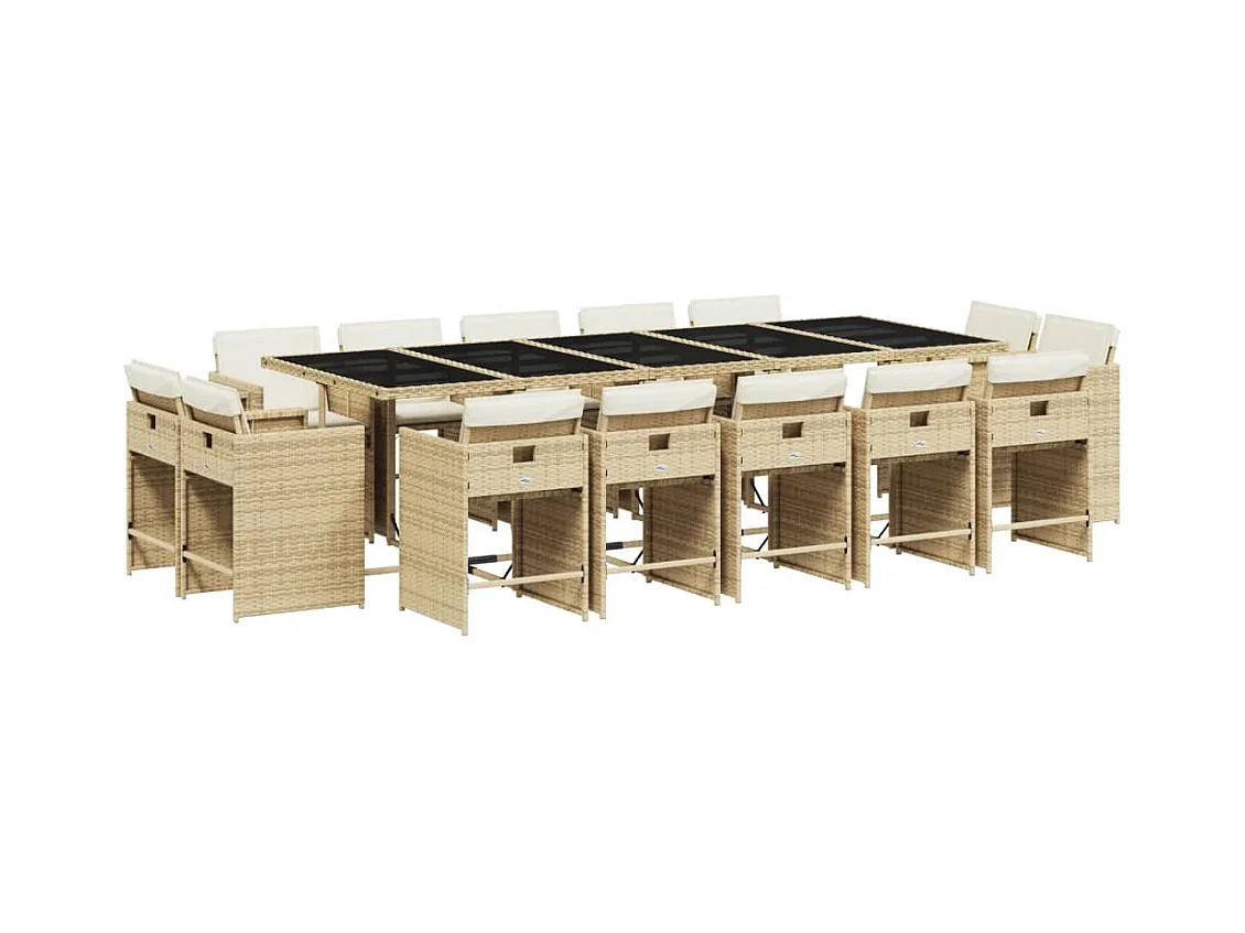 Ensemble à manger de jardin et coussins 15 pcs beige
