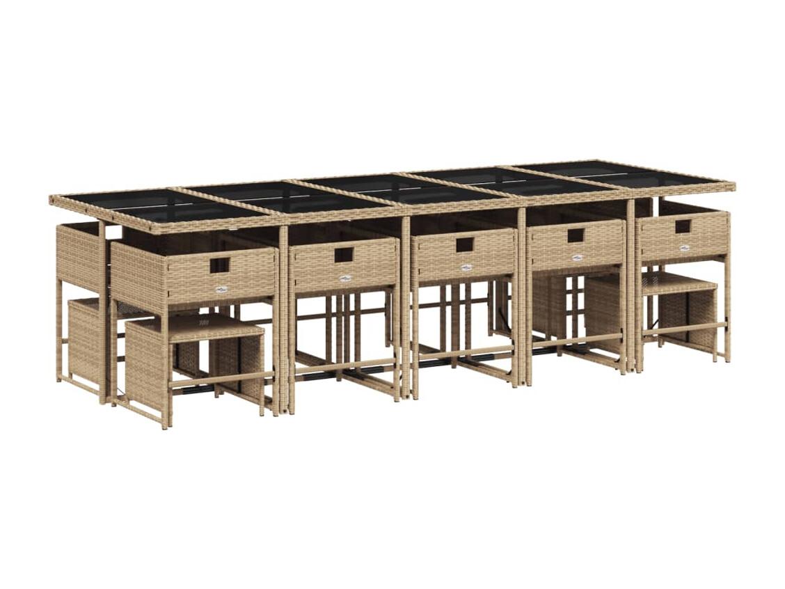 Ensemble à manger de jardin et coussins 17 pièces beige