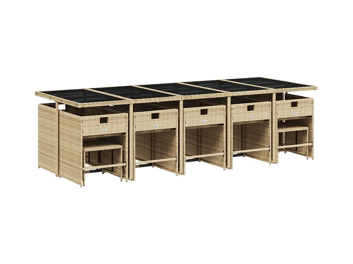 Ensemble à manger de jardin et coussins 15 pièces beige