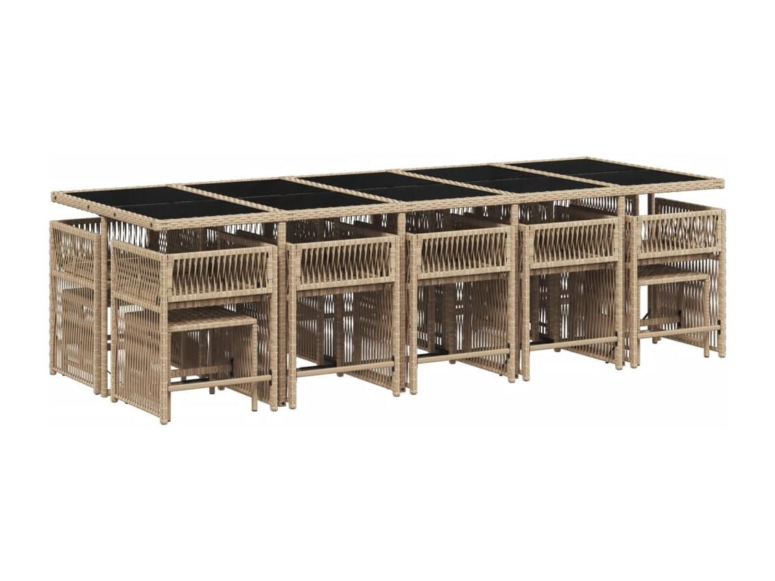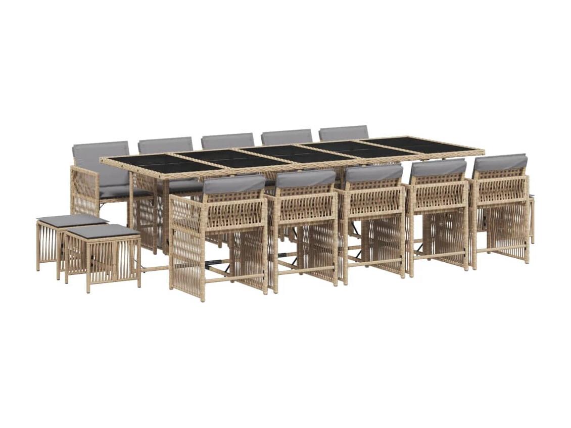 Ensemble à manger de jardin et coussins 17 pièces beige