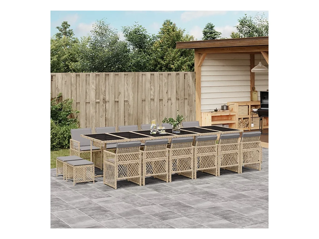 Ensemble à manger de jardin et coussins 17 pcs beige