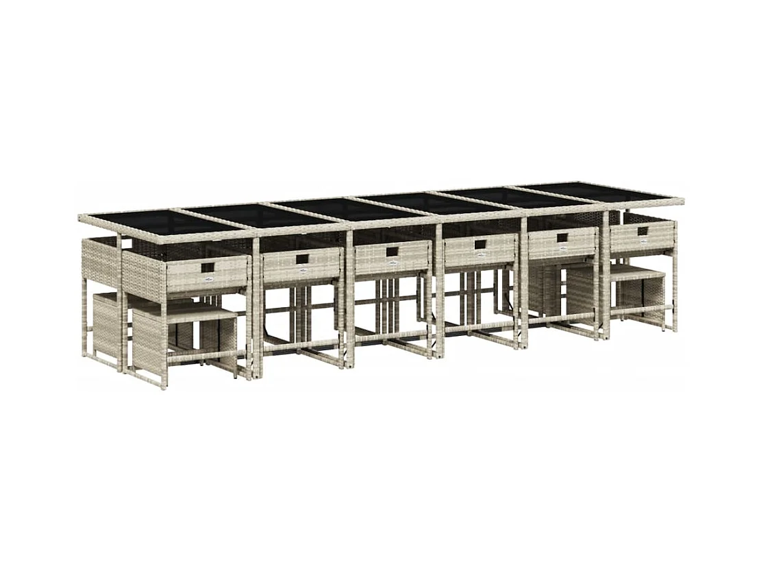 Ensemble à manger de jardin et coussins 13 pcs gris clair rotin