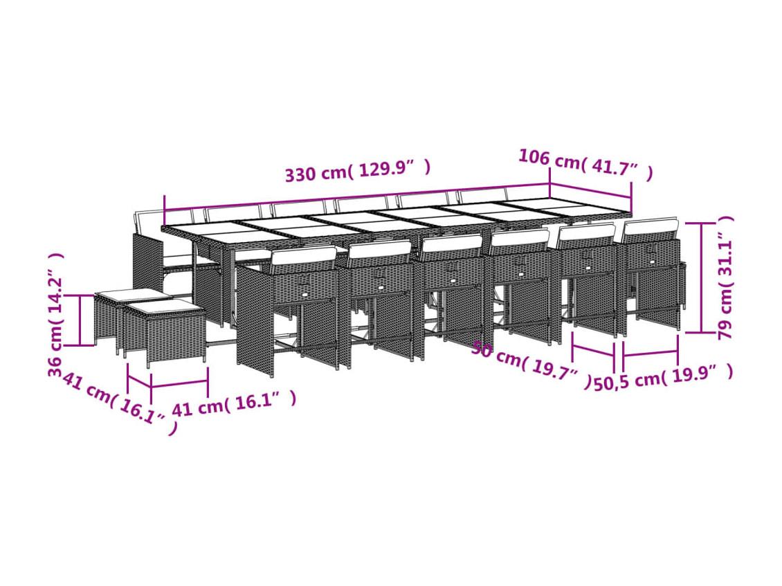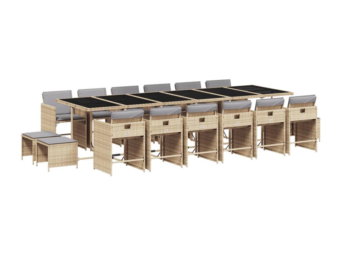 Ensemble à manger de jardin et coussins 17 pcs mélange beige