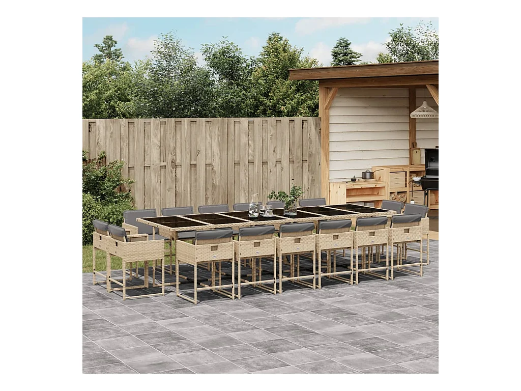 Ensemble à manger de jardin et coussins 17 pcs beige