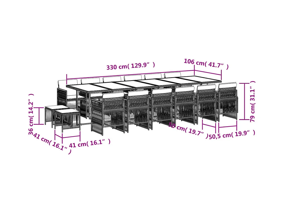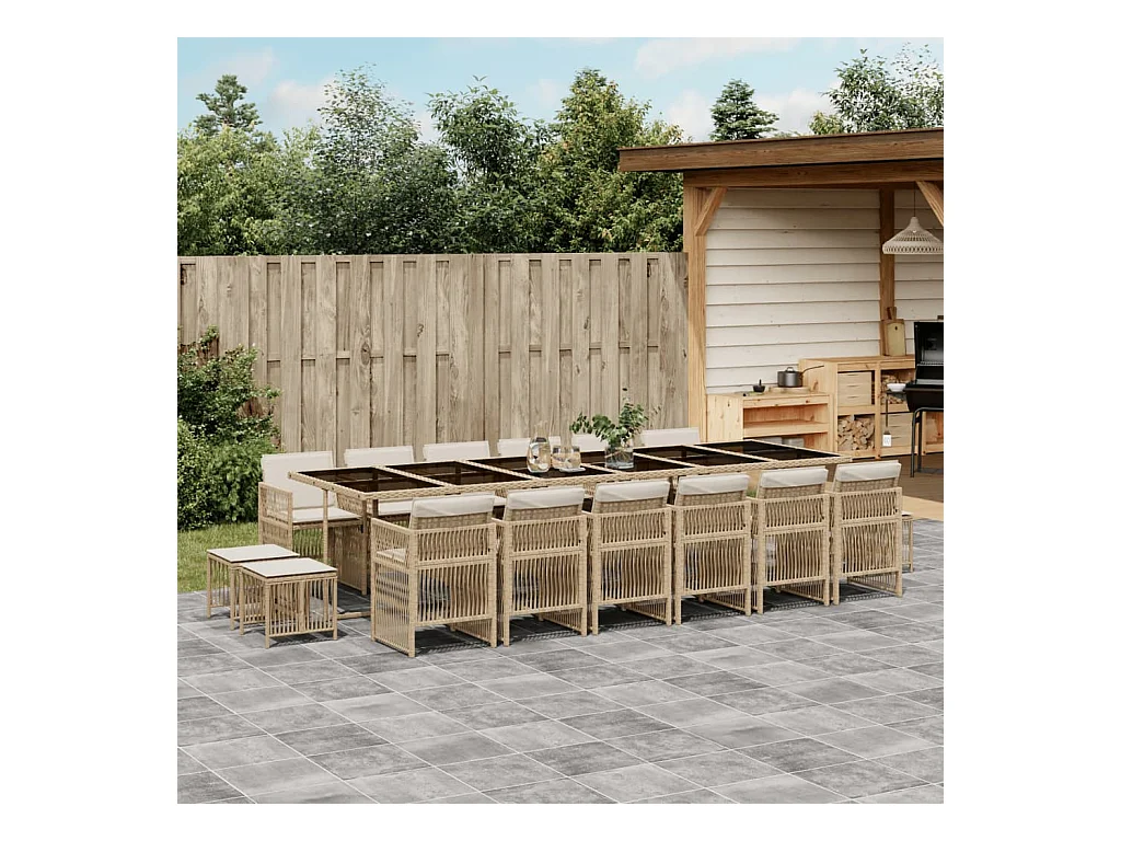 Ensemble à manger de jardin et coussins 17 pièces beige