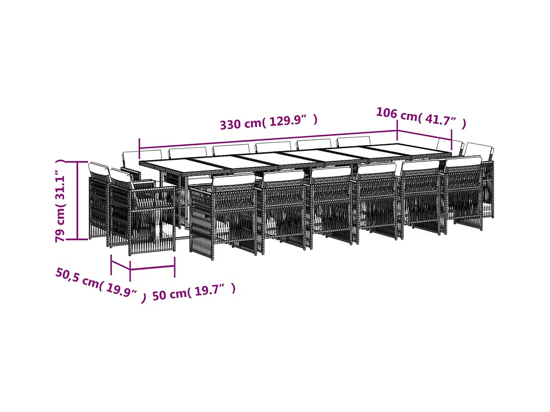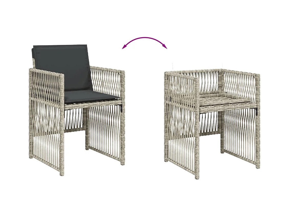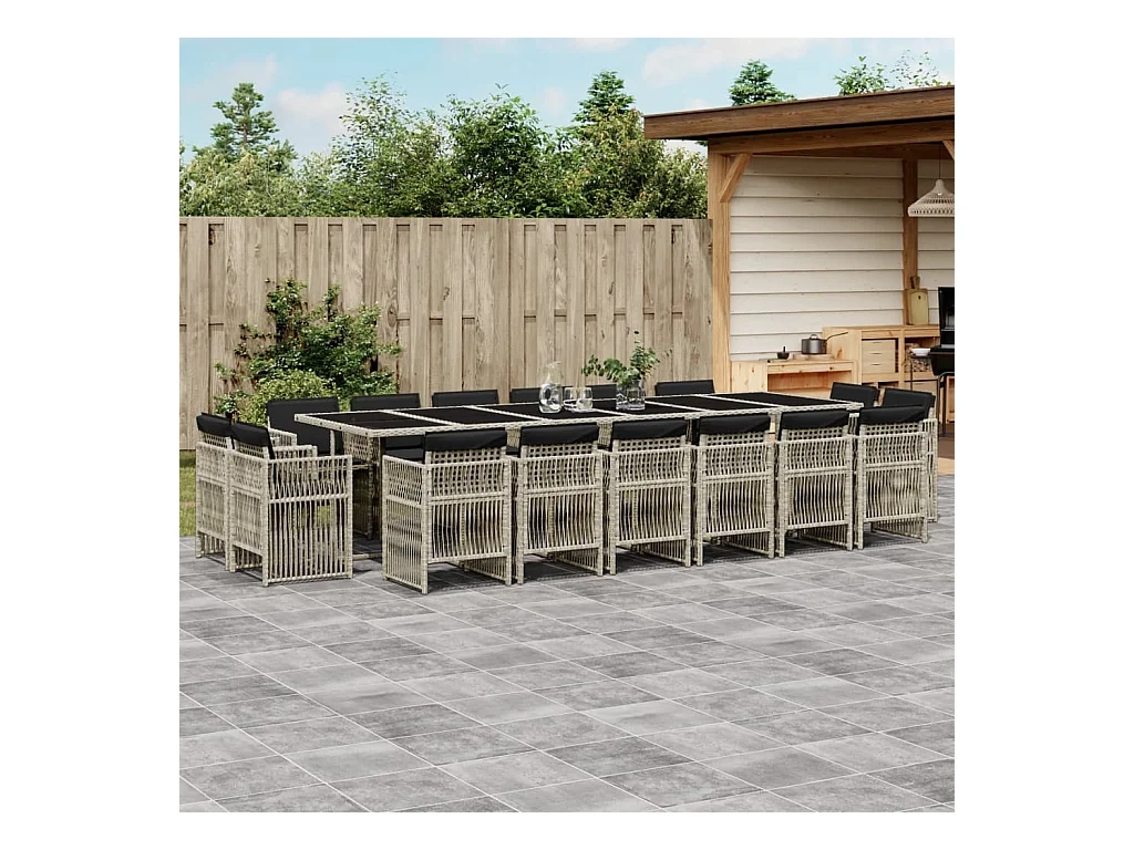 Ensemble à manger de jardin et coussins 17 pièces gris clair rotin