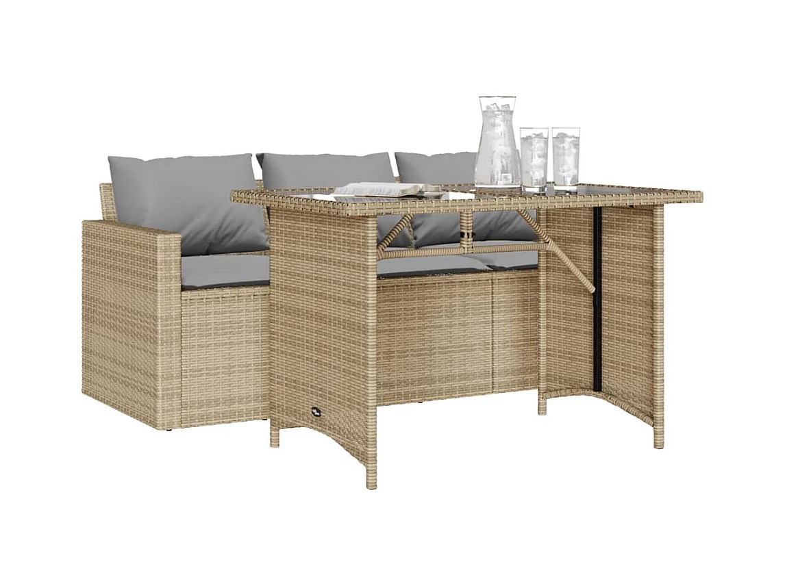 Ensemble de bistro 3 pcs avec coussins beige résine tressée GFDF65480