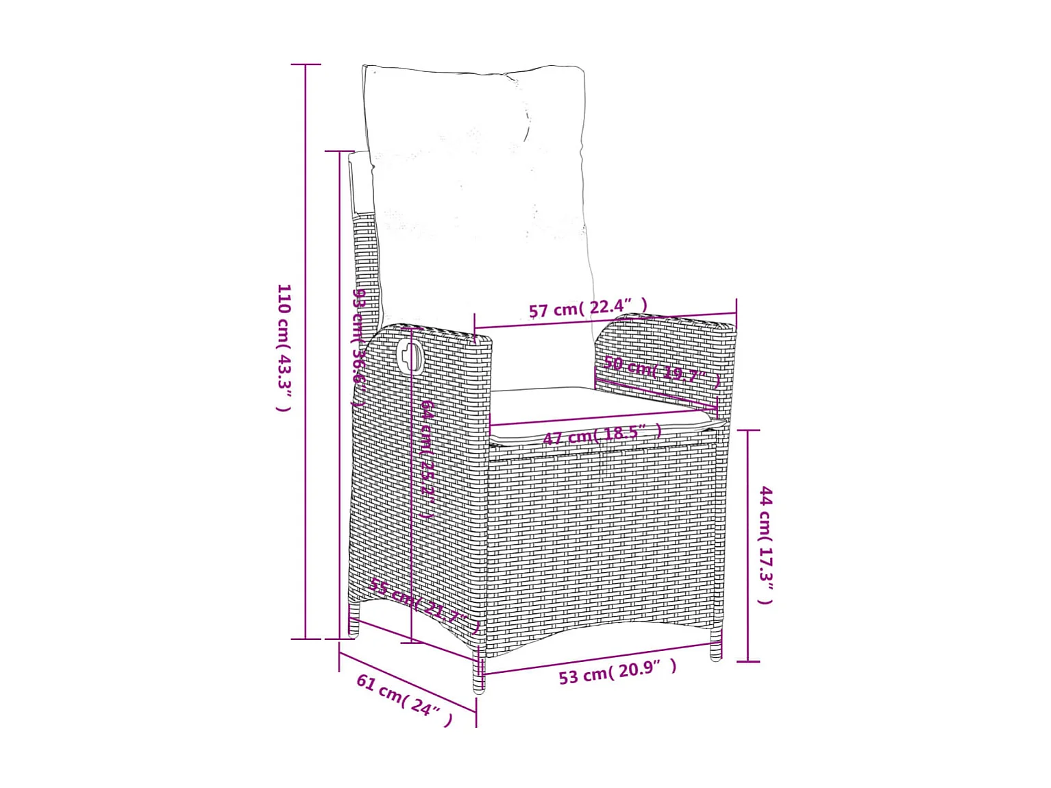 Ensemble à manger de jardin et coussins 3 pcs Beige poly rotin