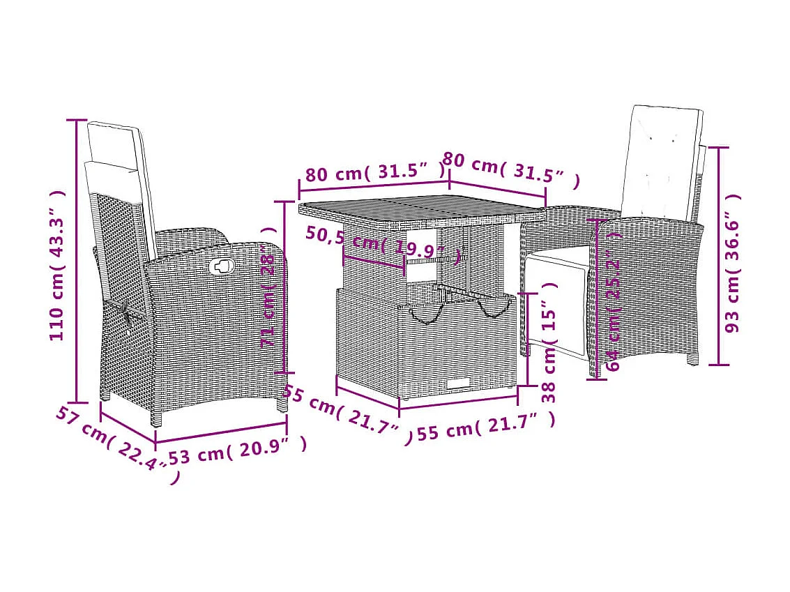 Ensemble à manger de jardin 3 pcs coussins gris résine tressée