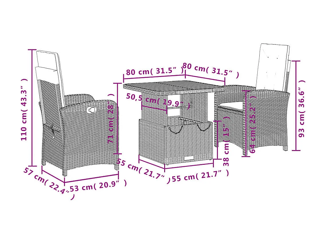 Ensemble à manger de jardin et coussins 3 pcs Beige poly rotin