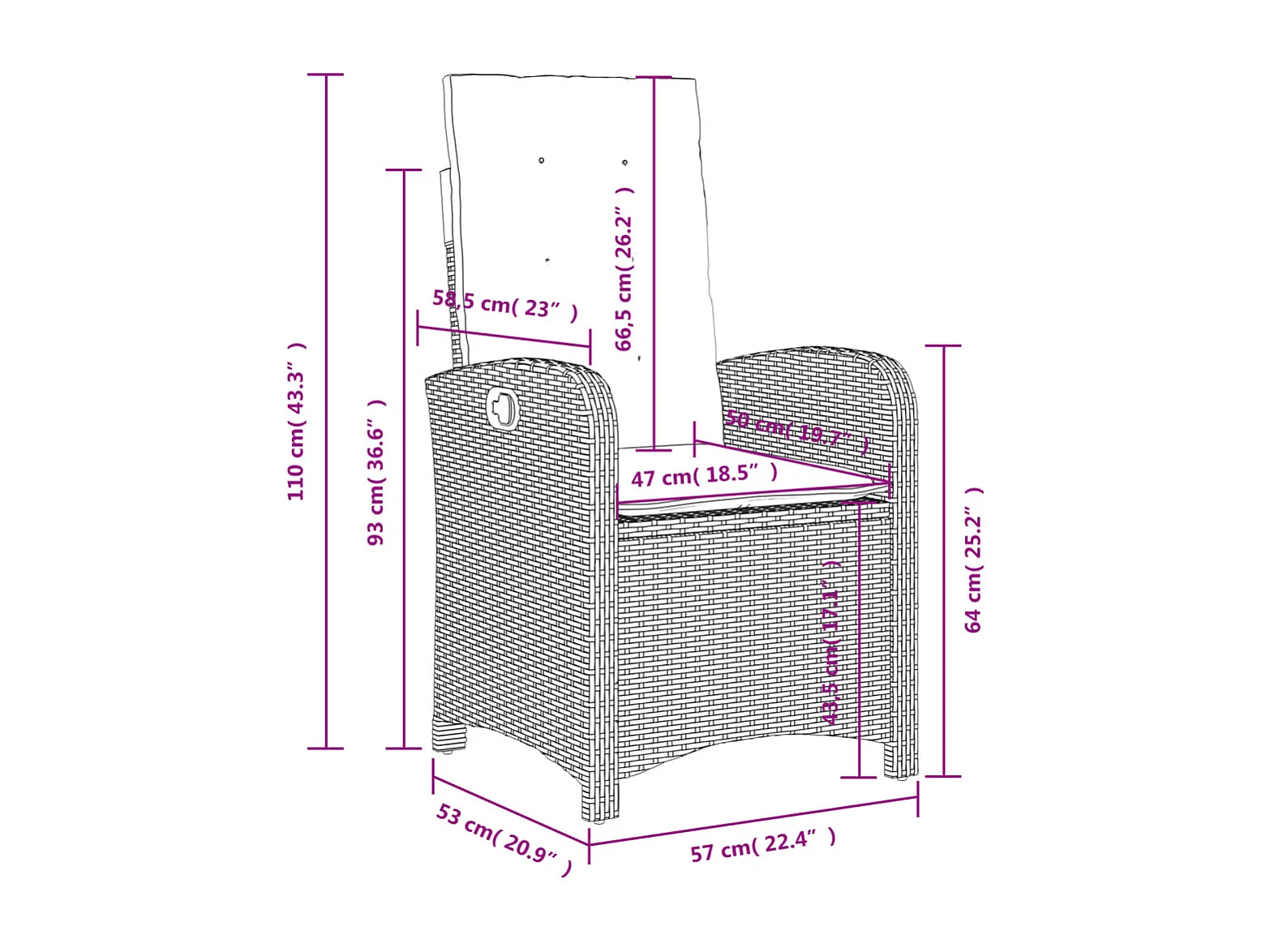 Ensemble à manger de jardin et coussins 3 pcs Beige poly rotin