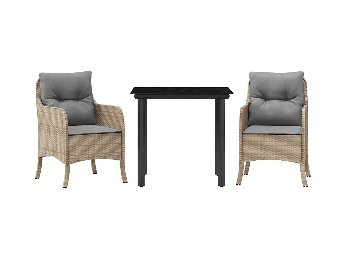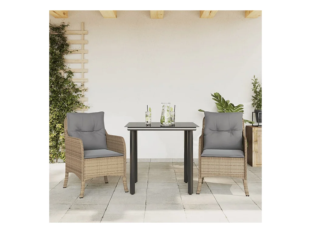 Ensemble à manger de jardin et coussins 3 pcs Beige poly rotin FR18567