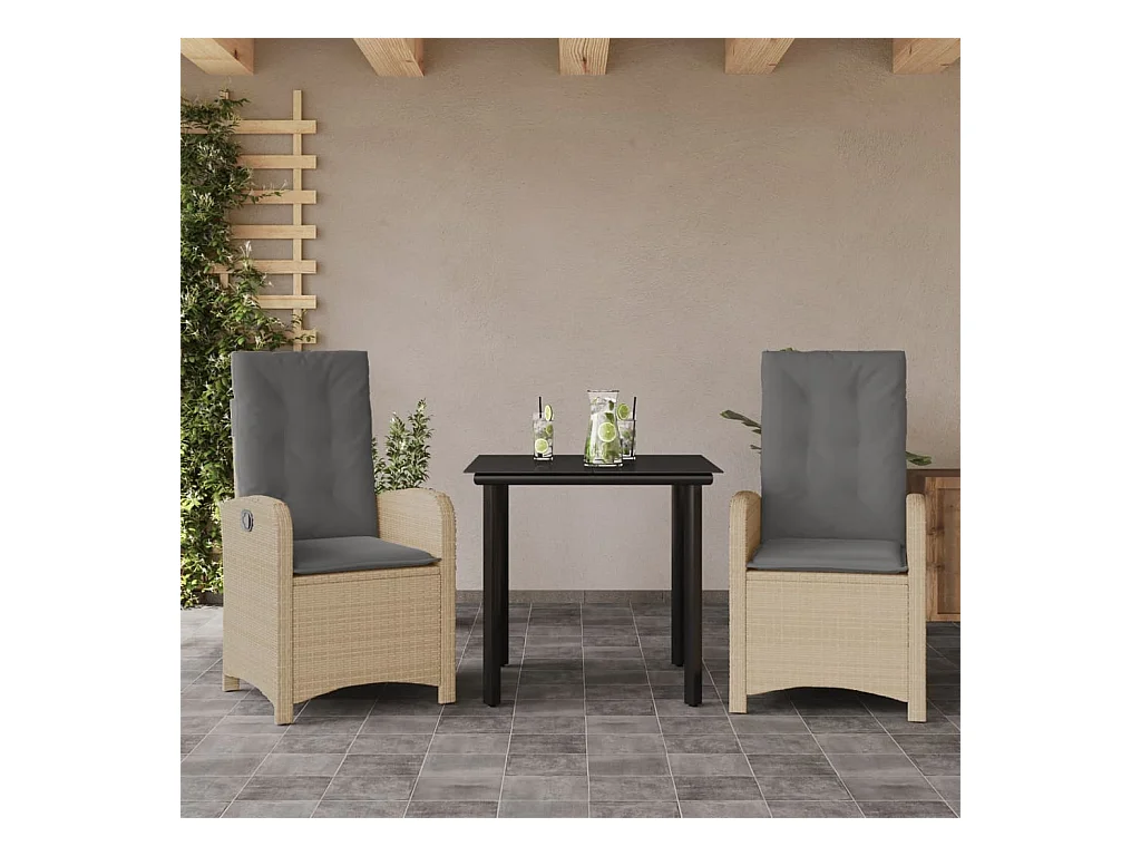 Arde Ensemble à manger de jardin et coussins 2 pcs beige poly rotin