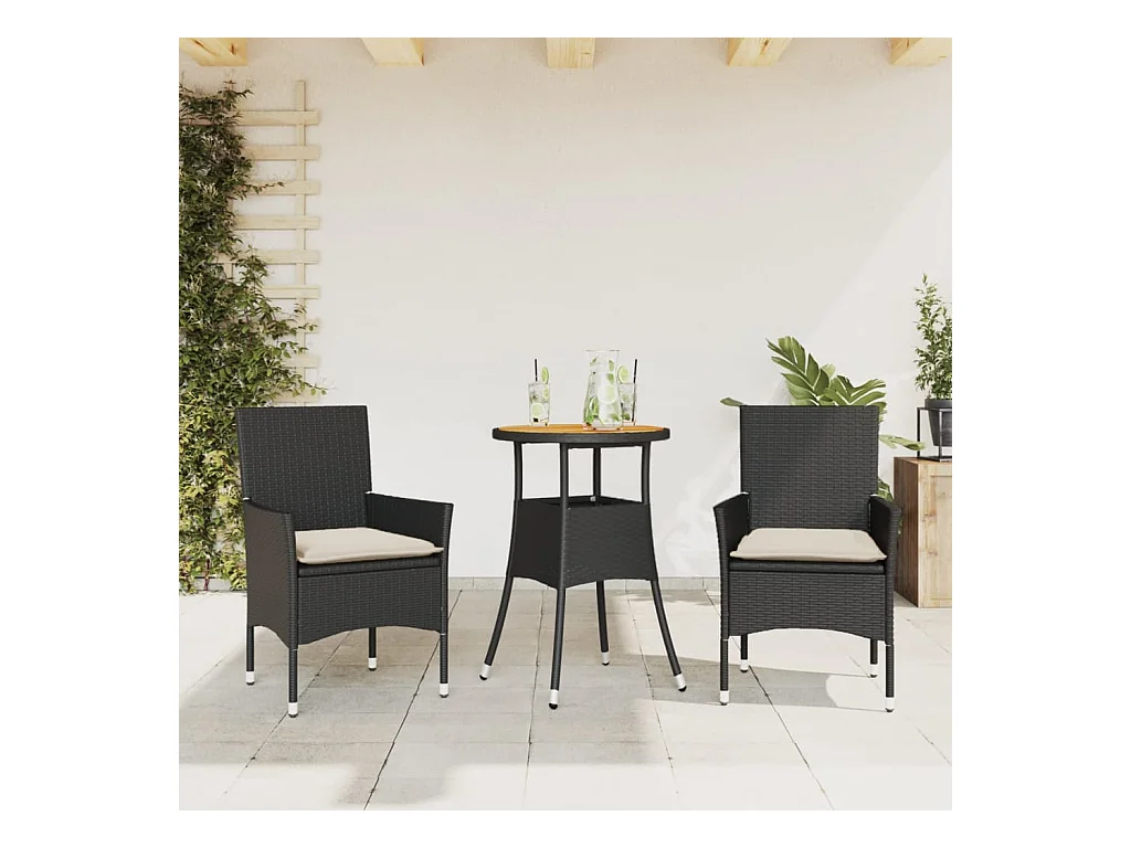 Ensemble à manger de jardin et coussins 3 pcs noir rotin acacia FR75484